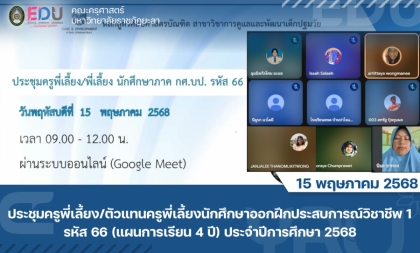 ประชุมครูพี่เลี้ยง/ตัวแทนครูพี่เลี้ยงนักศึกษาออกฝึกประสบการณ์วิชาชีพ 1 รหัส 66 (แผนการเรียน 4 ปี) ประจำปีการศึกษา 2568