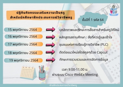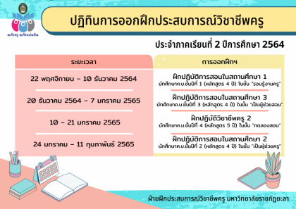 ปฏิทินการออกฝึกประสบการณ์วิชาชีพครู ประจำภาคเรียนที่ 2 ปีการศึกษา 2564