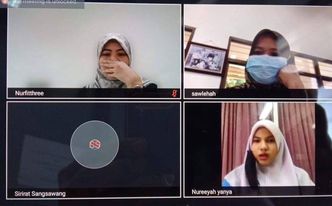 ประชุมพร้อมกันเพื่อพบปะพุดคุยเกี่ยวกับการจัดการเรียนการสอนในสถานการณ์โควิด 19 สำหรับนักศึกษา ชั้นปีที่ 5 รหัส 60