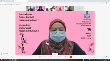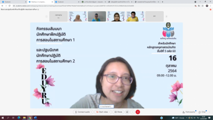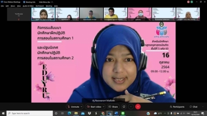 วันนี้ (16 ตุลาคม 2564) ฝ่ายฝึกประสบการณ์วิชาชีพครู จัดกิจกรรมสัมนาหลังฝึกปฏิบัติการสอนในสถานศึกษา 1 และปฐมนิเทศนักศึกษาฝึกปฏิบัติการสอนในสถานศึกษา 2 โดยผู้ช่วยศาสตราจารย์ ดร.รุ้งลาวัณย์ จันทรัตนา คณบดีคณะครุศาสตร์ ให้เกียรติเปิดพิธีพบปะ พูดคุยกับนักศึกษาหลักสูตรครุศาสตรบัณฑิต ชั้นปีที่ 5 รหัส 60 พร้อมด้วยคณาจารย์หลักสูตรครุศาสตรบัณฑิต เข้าร่วมกิจกรรมครั้งนี้