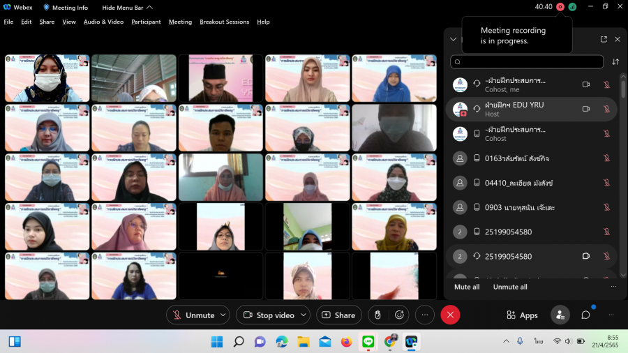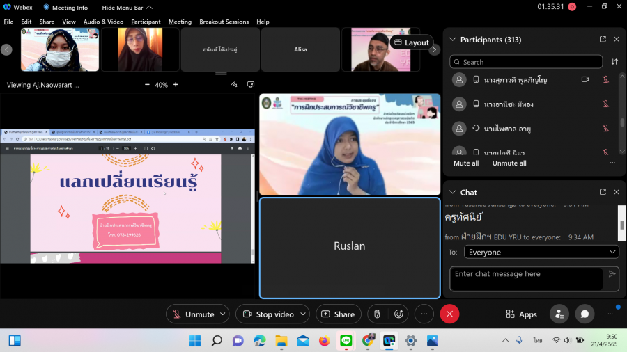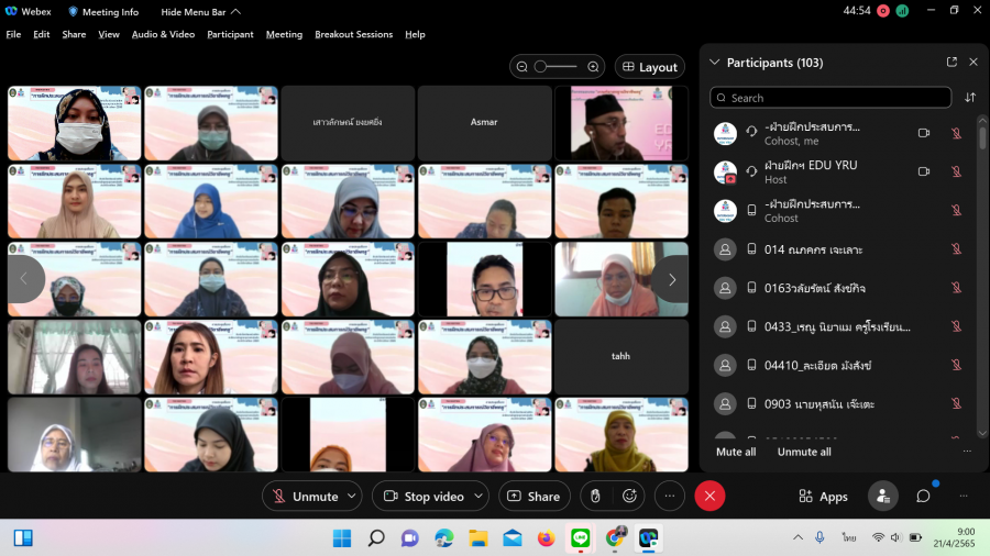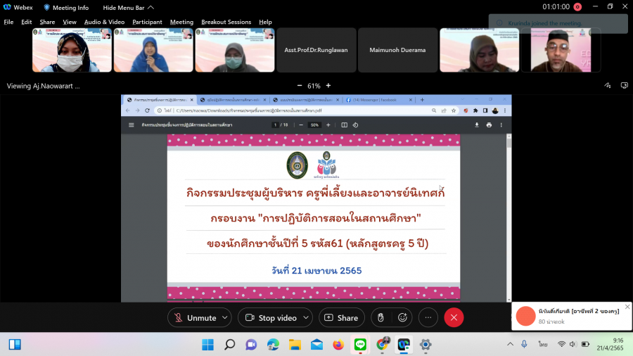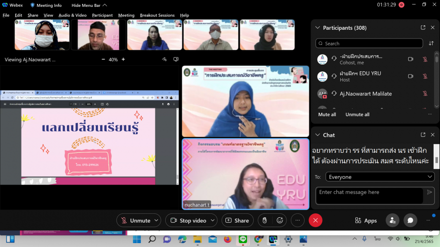 วันนี้ (21 เมษายน 2565) ฝ่ายฝึกประสบการณ์วิชาชีพครู จัดประชุมชี้แจง “การฝึกประสบการณ์วิชาชีพครู” สำหรับโรงเรียนหน่วยฝึกประสบการณ์วิชาชีพครูนักศึกษาหลักสูตรครุศาสตรบัณฑิต ชั้นปีที่ 5 รหัส 61 ประจำปีการศึกษา 2565 พิธีเปิดกิจกรรมโดย ผู้ช่วยศาสตราจารย์ ดร.รุ้งลาวัณย์ จันทรัตนา คณบดีคณะครุศาสตร์ และอาจารย์เนาวรัตน์ มะลีลาต๊ะ รองคณบดีฝ่ายวิชาการ คณะครุศาสตร์ ชี้แจงกระบวนการฝึกปฏิบัติการสอนในสถานศึกษาให้กับผู้บริหาร หัวหน้าฝ่ายวิชาการ ครูพี่เลี้ยงนักศึกษาฝึกประสบการณ์วิชาชีพครู และคณาจารย์หลักสูตรครุศาสตรบัณฑิตเข้าร่วมการประชุม ผ่านช่องทางออนไลน์ในระบบ Cisco Webex Meeting