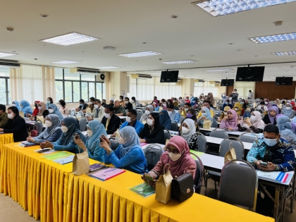 วันที่ 2 ธันวาคม 2565 ฝ่ายฝึกประสบการณ์วิชาชีพครู จัดกิจกรรมอบรมปฏิบัติการ “การฝึกประสบการณ์วิชาชีพครู ประจำปีการศึกษา 2565” สำหรับโรงเรียนหน่วยฝึกประสบการณ์วิชาชีพครูที่มีนักศึกษาหลักสูตรครุศาสตรบัณฑิต ชั้นปีที่ 1 รหัส 65 ชั้นปีที่ 2 รหัส 64 และชั้นปีที่ 3 รหัส 63ลงปฏิบัติการสอนในสถานศึกษา ประจำภาคเรียนที่ 2 ปีการศึกษา 2565