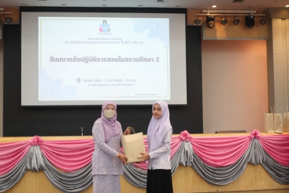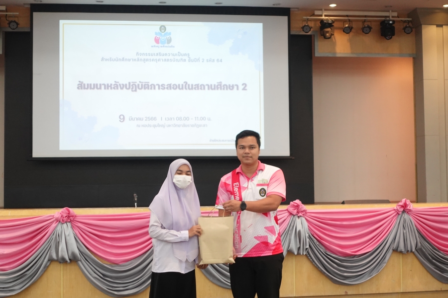 เมื่อวันที่ 9 มีนาคม 2566 เวลา 08.00 – 11.00 น. ฝ่ายฝึกประสบการณ์วิชาชีพครู จัดกิจกรรม "สัมมนาหลังปฏิบัติการสอนในสถานศึกษา2" สำหรับนักศึกษาหลักสูตร ครุศาสตรบัณฑิตชั้นปีที่ 2 รหัส 64 ในรูปแบบของการประมวลคลิปวิดีโอการถอดบทเรียนที่ได้รับจากการปฏิบัติการสอนในสถานศึกษา2 ของนักศึกษาแต่ละสาขาวิชา โดยมีผู้ช่วยศาสตราจารย์ ดร.รุ้งลาวัณย์ จันทรัตนา คณบดีคณะครุศาสตร์ พร้อมด้วยคณาจารย์ประจำหลักสูตร โดยมีนักศึกษากลุ่มสวัสดิการรับผิดชอบการดำเนินกิจกรรมในครั้งนี้ ได้แก่ นักศึกษาหลักสูตรครุศาสตรบัณฑิต ชั้นปีที่ 2 สาขาวิชาการศึกษาปฐมวัย ห้อง2 สาขาวิชาคอมพิวเตอร์และสาขาวิชาการประถมศึกษา ซึ่งได้จัดขึ้น ณ หอประชุมเฉลิมพระเกียรติ 80 พรรษา 5 ธันวาคม 2550 มหาวิทยาลัยราชภัฏยะลา