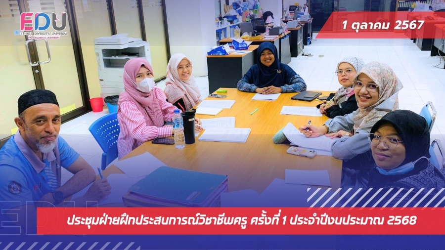 วันที่ 1 ตุลาคม 2567 ฝ่ายฝึกประสบการณ์วิชาชีพครู นำโดย อาจารย์เนาวรัตน์ มะลีลาเต๊ะ หัวหน้าฝ่ายฝึกประสบการณ์วิชาชีพครู พร้อมด้วยคณะกรรมการฝ่ายฝึกประสบการณ์วิชาชีพครู ร่วมประชุมเพื่อวางแนวทางการดำเนินงานฝึกประสบการณ์วิชาชีพครู ภายใต้โครงการพัฒนาการเรียนการสอน ประจำปีงบประมาณ 2568 และเตรียมความพร้อมการดำเนินงานกิจกรรมสัมมนาหลังปฏิบัติการสอนในสถานศึกษา 4 จัดขึ้น ณ ห้องฝ่ายฝึกประสบการณ์วิชาชีพครู ชั้น 3 อาคารสังคมศาสตร์ มหาวิทยาลัยราชภัฏยะลา