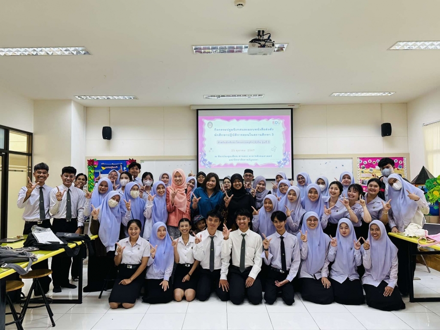 วันที่ 25 ตุลาคม 2567 เวลา 08.30 - 12.00 น. ฝ่ายฝึกประสบการณ์วิชาชีพครู จัดกิจกรรมปฐมนิเทศนักศึกษาปฏิบัติการสอนในสถานศึกษา 3 สำหรับนักศึกษาหลักสูตรครุศาสตรบัณฑิต ชั้นปีที่ 3 รหัส 65 โครงการครูรัก(ษ์)ถิ่น รุ่นที่ 3 โดยมี อาจารย์เนาวรัตน์ มะลีลาเต๊ะ หัวหน้าฝ่ายฝึกประสบการณ์วิชาชีพครู คณะครุศาสตร์ ชี้แจงเกี่ยวกับคู่มือฯและการเตรียมความพร้อมก่อนปฏิบัติการสอนในสถานศึกษา 3 พร้อมด้วยคณาจารย์หลักสูตรครุศาสตรบัณฑิต สาขาวิชาการประถมศึกษา ร่วมพบปะและส่งกำลังใจให้นักศึกษา จัดขึ้น ณ ห้องปฏิบัติการสาขาการประถมศึกษา ชั้น 3 อาคารสังคมศาสตร์ มหาวิทยาลัยราชภัฏยะลา