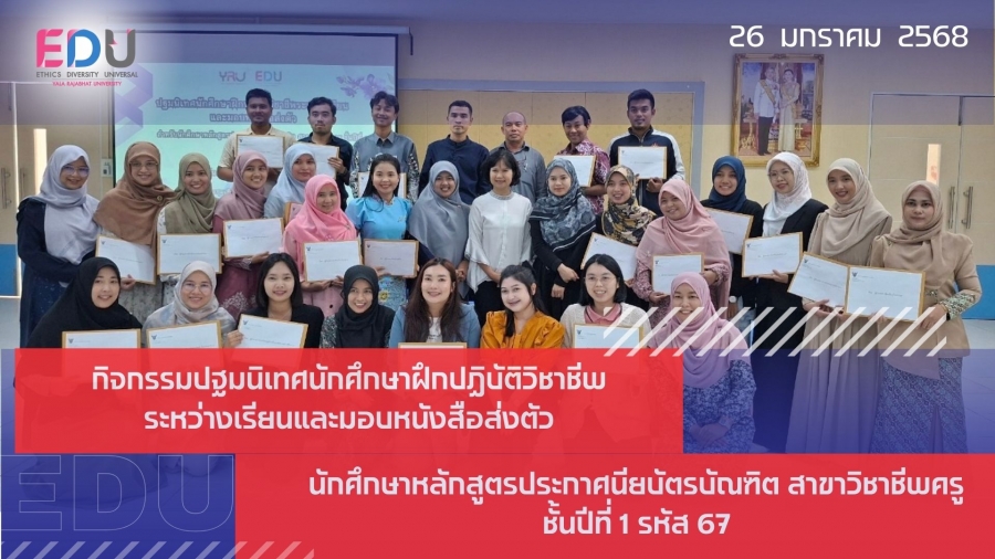 ให้กับนักศึกษาภาค ป.บัณฑิต เพื่อชี้แจงรายละเอียด สำหรับเตรียมตัวก่อนออกฝึกปฏิบัติวิชาชีพระหว่างเรียนในสถานศึกษา