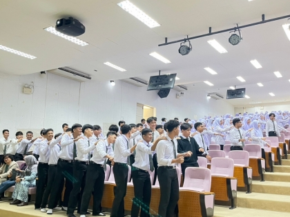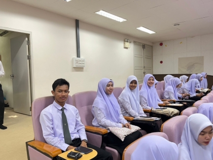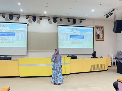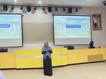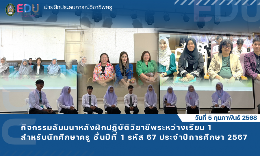 อาจารย์เนาวรัตน์ มะลีลาเต๊ะ ผู้ช่วยคณบดีฝ่ายกิจการพิเศษ เปิดพิธีและให้โอวาทนักศึกษา ในกิจกรรมสัมมนาหลังฝึกปฏิบัติวิชาชีพระหว่างเรียน 1 สำหรับนักศึกษาหลักสูตรครุศาสตรบัณฑิต ชั้นปีที่ 1 รหัส 67 โดยมีคณาจารย์ผู้รับผิดชอบประจำหลักสูตรครุศาสตรบัณฑิต ร่วมให้กำลังใจและรับฟังการถอดบทเรียนและแลกเปลี่ยนความรู้ ประสบการณ์ ตลอดจนปัญหาอุปสรรคที่เกิดขึ้นในระหว่างการฝึกฯของนักศึกษา จัดขึ้น ณ ห้องประชุมเซอรา ชั้น 2 อาคารสังคมศาสตร์ คณะครุศาสตร์ มหาวิทยาลัยราชภัฏยะลา