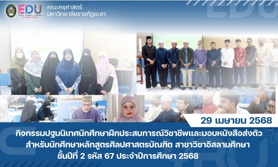 ฝ่ายฝึกประสบการณ์วิชาชีพครู ร่วมกับหลักสูตรศิลปศาสตรบัณฑิต สาขาวิชาอิสลามศึกษา จัดกิจกรรมปฐมนิเทศนักศึกษาฝึกประสบการณ์วิชาชีพและมอบหนังสือส่งตัว ให้กับนักศึกษาภาค ศศบ. สำหรับชั้นปีที่ 2 รหัส 67 ประจำปีการศึกษา 2568 เพื่อชี้แจงรายละเอียด สำหรับเตรียมตัวก่อนออกฝึกประสบการณ์วิชาชีพอิสลามศึกษา