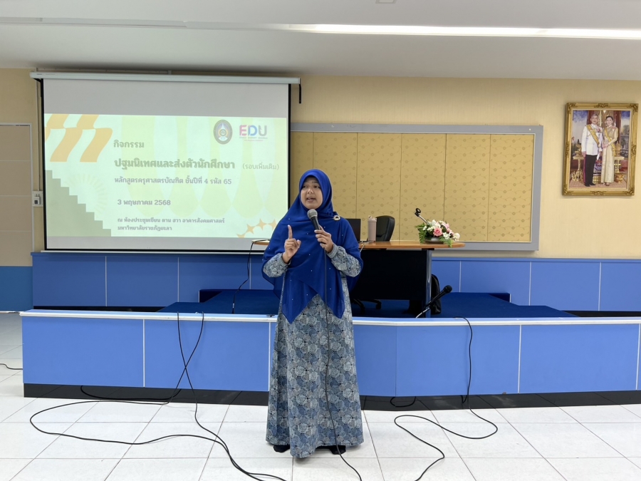 กิจกรรมปฐมนิเทศนักศึกษาฝึกประสบการณ์วิชาชีพครูและมอบหนังสือส่งตัว สำหรับนักศึกษาหลักสูตรครุศาสตรบัณฑิต ชั้นปีที่ 4 รหัส 65 สาขาวิชาคอมพิวเตอร์ศึกษา โดยมี อาจารย์เนาวรัตน์ มะลีลาเต๊ะ ผู้ช่วยคณบดี คณะครุศาสตร์ ชี้แจงเกี่ยวกับคู่มือฯและการเตรียมความพร้อมก่อนปฏิบัติการสอนในสถานศึกษา 4 จัดขึ้น ณ ห้องประชุมเซียน ตาน ฮวา ชั้น 3 อาคารสังคมศาสตร์ มหาวิทยาลัยราชภัฏยะลา.