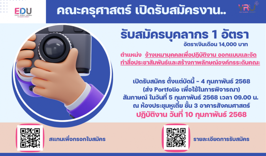 รับสมัครงานจ้างเหมาบุคคลเพื่อปฏิบัติงานออกแบบและจัดทำสื่อประชาสัมพันธ์ 1 อัตรา