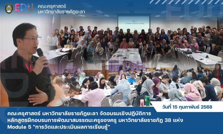 วันที่ 15 กุมภาพันธ์ 2568 คณะครุศาสตร์ มหาวิทยาลัยราชภัฏยะลา จัดอบรมเชิงปฏิบัติการหลักสูตรฝึกอบรมการพัฒนาสมรรถนะครูของครู มหาวิทยาลัยราชภัฏ 38 แห่ง Module 5