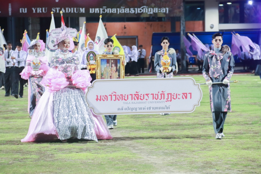 บรรยากาศภายในงานเต็มไปด้วยสีสันและความคึกคัก โดยมี ขบวนพาเหรดจากแต่ละคณะ เดินเข้าสู่สนามอย่างสง่างาม ท่ามกลางเสียงเชียร์ที่ดังกึกก้อง นอกจากนี้ ยังมีการแสดงสุดพิเศษที่สะท้อนถึง ศิลปวัฒนธรรมท้องถิ่นและอัตลักษณ์ของชาวมหาวิทยาลัยราชภัฏยะลา สร้างความประทับใจให้แก่ผู้เข้าร่วมงานเป็นอย่างมาก
