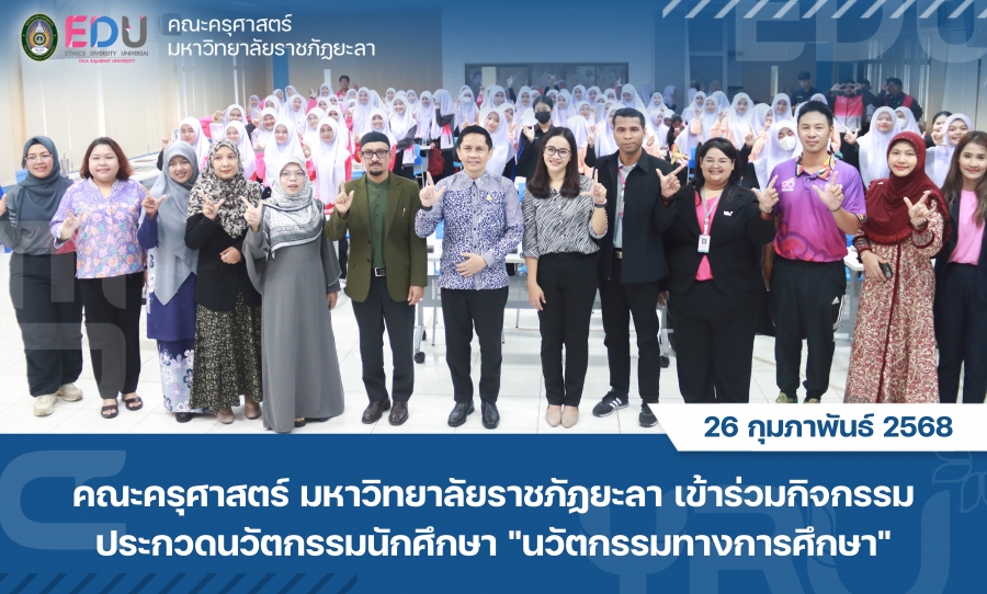 วันนี้ วันที่ 26 กุมภาพันธ์ 2568 คณะครุศาสตร์ มหาวิทยาลัยราชภัฏยะลา เข้าร่วมกิจกรรม ประกวดนวัตกรรมนักศึกษา "นวัตกรรมทางการศึกษา" โดยมี ผู้ช่วยศาสตราจารย์ ดร.มูหัมมัดตอลาล แกมะ คณบดีคณะครุศาสตร์ เป็นประธานกล่าวเปิดงาน พร้อมด้วย ผู้ช่วยศาสตราจารย์ฮูซีน ฮาซาณัณท์ รองคณบดีฝ่ายพัฒนานักศึกษาและทำนุบำรุงศิลปวัฒนธรรม คณาจารย์ บุคลากร และนักศึกษา กิจกรรมจัดขึ้นในวันที่ 26 กุมภาพันธ์ 2568 เวลา 08.30 - 16.00 น. ณ ห้องประชุมเขียน ดาษ ฮาวา ชั้น 3 อาคารสังคมศาสตร์
