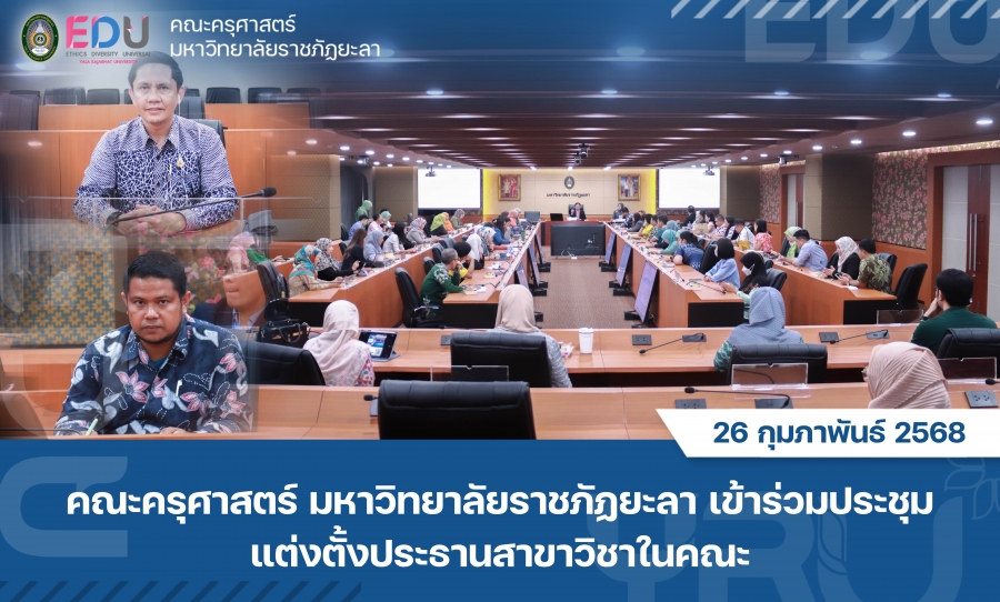 วันที่ 26 กุมภาพันธ์ 2568 เวลา 10.00 น. คณะผู้บริหารคณะครุศาสตร์ มหาวิทยาลัยราชภัฏยะลา นำโดย ผู้ช่วยศาสตราจารย์ ดร.มูหัมมัดตอลาล แกมะ คณบดีคณะครุศาสตร์ พร้อมด้วย อาจารย์ ดร.อิสมาแอ สนิ รองคณบดีฝ่ายบริหาร วิจัย และพัฒนาท้องถิ่น และคณาจารย์จากคณะครุศาสตร์ ได้เข้าร่วม การประชุมแต่งตั้งประธานสาขาวิชาในคณะของมหาวิทยาลัยราชภัฏยะลา ณ ห้องประชุมจันทน์กะพ้อ ชั้น 3 อาคารเฉลิมพระเกียรติ 50 พรรษา มหาวชิราลงกรณ