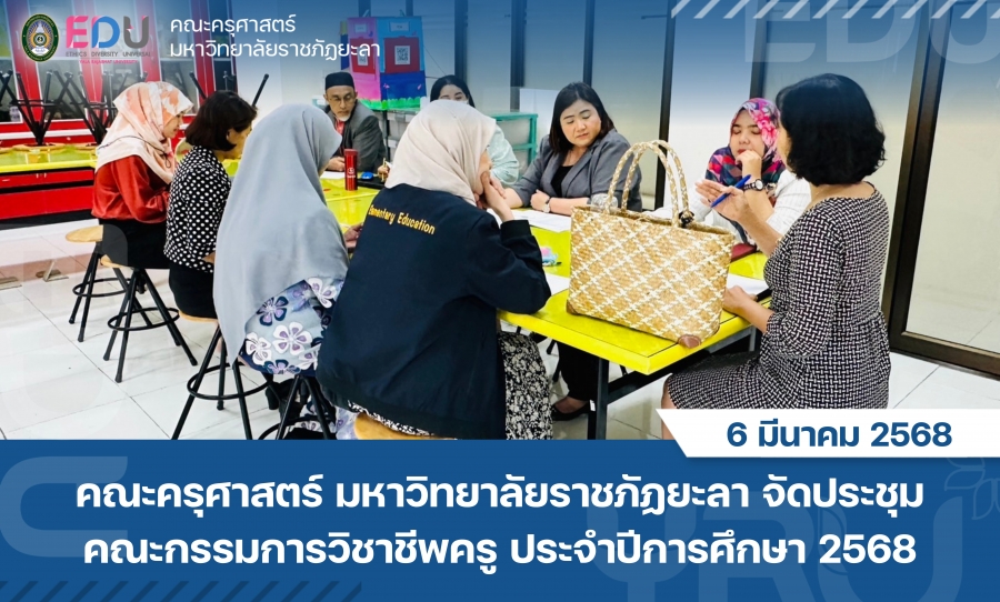 เมื่อวันที่ 6 มีนาคม 2568 ฝ่ายวิชาการ คณะครุศาสตร์ มหาวิทยาลัยราชภัฏยะลา ได้จัดประชุม คณะกรรมการวิชาชีพครู ณ ห้องผลิตสื่อ สาขาวิชาการประถมศึกษา ชั้น 3 อาคารสังคมศาสตร์ เพื่อ พิจารณารายวิชา และพิจารณาการมอบหมายอาจารย์ผู้สอนในหลักสูตรวิชาชีพครู ประจำปีการศึกษา 2568