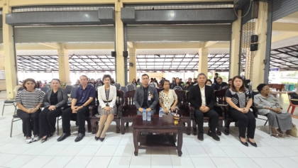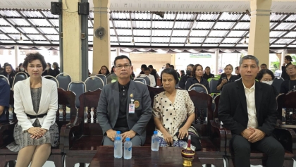 โดยมี อาจารย์จันจลี ถนอมลิขิตวงศ์ รองคณบดีฝ่ายบริหาร นางสาวกรัณฑรัตน์ เติมวิทย์ขจร รักษาการในตำแหน่งผู้อำนวยการสำนักงานคณบดี พร้อมด้วยผู้บริหาร และบุคลากรมหาวิทยาลัย เข้าร่วมในพิธี ทั้งนี้ได้รับเกียรติจาก ผู้ช่วยศาสตราจารย์ ดร.บุญสิทธิ์ ไชยชนะ รองอธิการบดีฝ่ายพัฒนานักศึกษาและมวลชนสัมพันธ์ เป็นประธานในพิธี