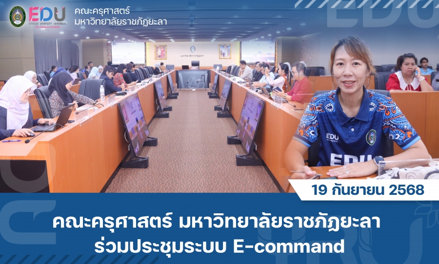 เมื่อวันที่ 18 กันยายน 2568 คณะครุศาสตร์ มหาวิทยาลัยราชภัฏยะลา เข้าร่วม “การประชุมระบบ E-command” โดยมีนางสาวกรัณฑรัตน์ เติมวิทย์ขจร รักษาการในตำแหน่งผู้อำนวยการสำนักงานคณบดี พร้อมด้วยเจ้าหน้าที่คณะ เข้าร่วมประชุม ณ ห้องประชุมจันทร์กระพ้อ ชั้น 2 อาคาร 20(อาคาร 50 พรรษา มหาวชิราลงกรณ) มหาวิทยาลัยราชภัฏยะลา