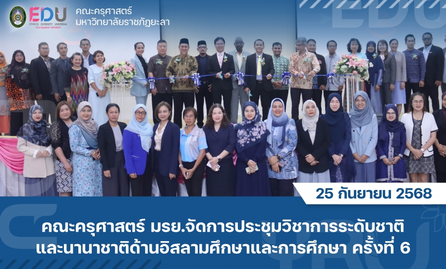 เมื่อวันที่ 25 กันยายน 2568 ที่ผ่านมา คณะครุศาสตร์ มหาวิทยาลัยราชภัฏยะลา จัดการประชุมวิชาการระดับชาติและนานาชาติด้านอิสลามศึกษาและการศึกษา ครั้งที่ 6 ภายใต้หัวข้อ “อิสลามศึกษาและการศึกษาเพื่อการพัฒนาในยุค AI” ในรูปแบบกึ่งออนไลน์ โดยได้รับเกียรติจาก