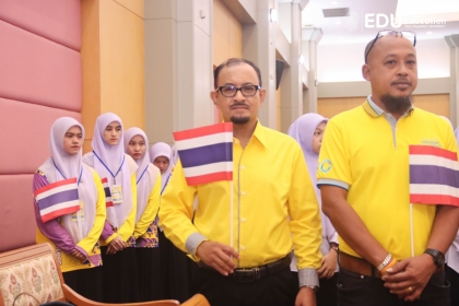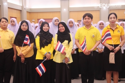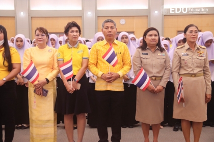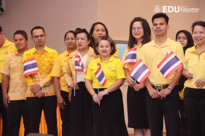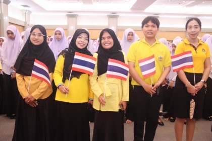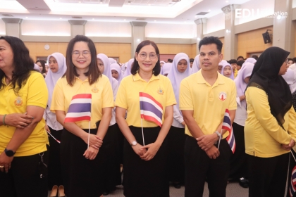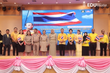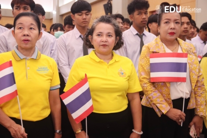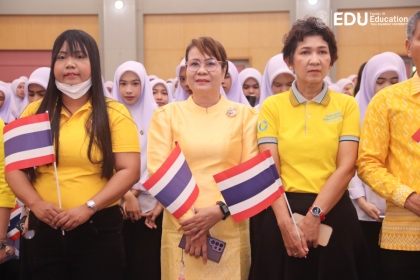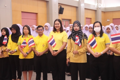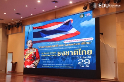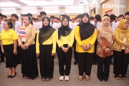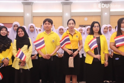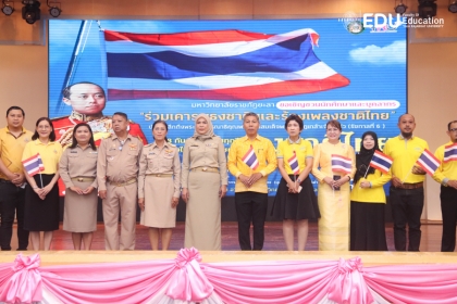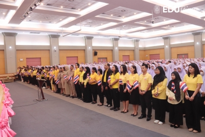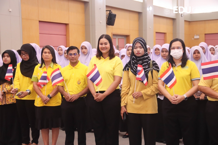 ในการนี้ คณะผู้บริหาร คณาจารย์ บุคลากร และนักศึกษา ได้ร่วมกันเคารพธงชาติและขับร้องเพลงชาติไทยอย่างพร้อมเพรียง เพื่อแสดงออกถึงความจงรักภักดี ความสามัคคี และความภาคภูมิใจในความเป็นไทย