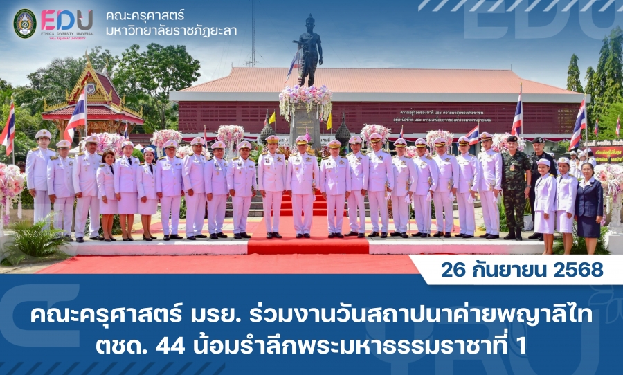 เมื่อวันที่ 26 กันยายน 2568 คณะครุศาสตร์ มหาวิทยาลัยราชภัฏยะลา เข้าร่วมงานวันสถาปนาค่ายพญาลิไท กองกำกับการตำรวจตระเวนชายแดนที่ 44 ตำบลบุดี อำเภอเมือง จังหวัดยะลา เพื่อน้อมรำลึกถึงพระเกียรติคุณของพระมหาธรรมราชาที่ 1 (พญาลิไท) พระมหากษัตริย์องค์ที่ 6 แห่งกรุงสุโขทัย และพระราชนัดดาของพ่อขุนรามคำแหงมหาราช