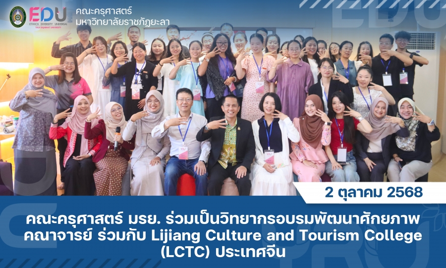 เมื่อวันที่ 2 ตุลาคม 2568 กองบริการการศึกษา มหาวิทยาลัยราชภัฏยะลา จัดกิจกรรมอบรมหัวข้อ “การจัดการเรียนการสอนและเทคนิคการสอนในชั้นเรียนระดับอุดมศึกษา” ณ American Corner ชั้น 2 อาคารศูนย์บรรณราชนครินทร์ โดยมีคณาจารย์จาก Lijiang Culture and Tourism College (LCTC) สาธารณรัฐประชาชนจีน เข้าร่วม ภายใต้บันทึกข้อตกลงความร่วมมือ (MOU) ระหว่างมหาวิทยาลัยราชภัฏยะลา และวิทยาลัยวัฒนธรรมและการท่องเที่ยว เมืองลี่เจียง