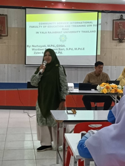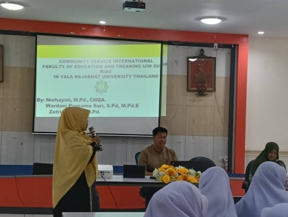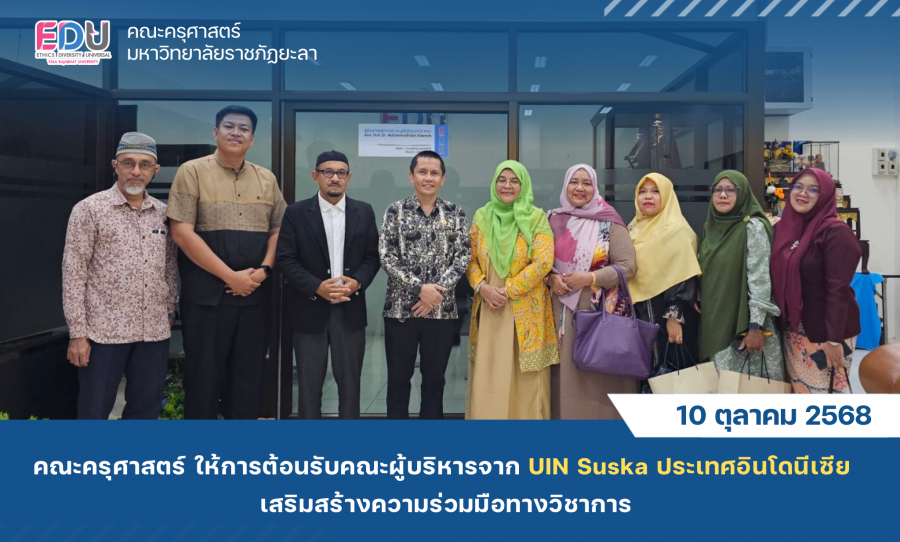 คณะครุศาสตร์ นำโดย ผู้ช่วยศาสตราจารย์ ดร.มูหัมมัดตอลาล แกมะ คณบดีคณะครุศาสตร์ พร้อมด้วย ผู้ช่วยศาสตราจารย์ฮูซีน ฮาซาณัณท์ รองคณบดี และ ผู้ช่วยศาสตราจารย์อับดุลฮาลิม อาแด ให้การต้อนรับคณะผู้บริหารจาก Universitas Islam Negeri Sultan Syarif Kasim (UIN Suska) ประเทศอินโดนีเซีย ในโอกาสเข้าเยี่ยมเยือนและหารือความร่วมมือทางวิชาการระหว่างสองสถาบัน