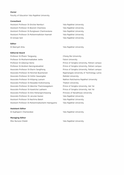 วารสารครุศาสตร์ มหาวิทยาลัยราชภัฏยะลา (Journal of Education Yala Rajabhat University)