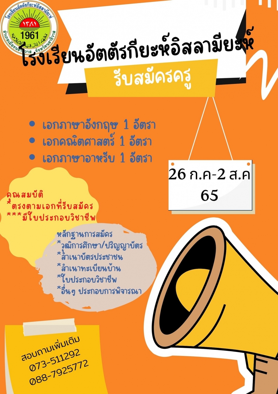 ร.ร.อัตตัรกียะห์เปิดรับสมัครอาจารย์